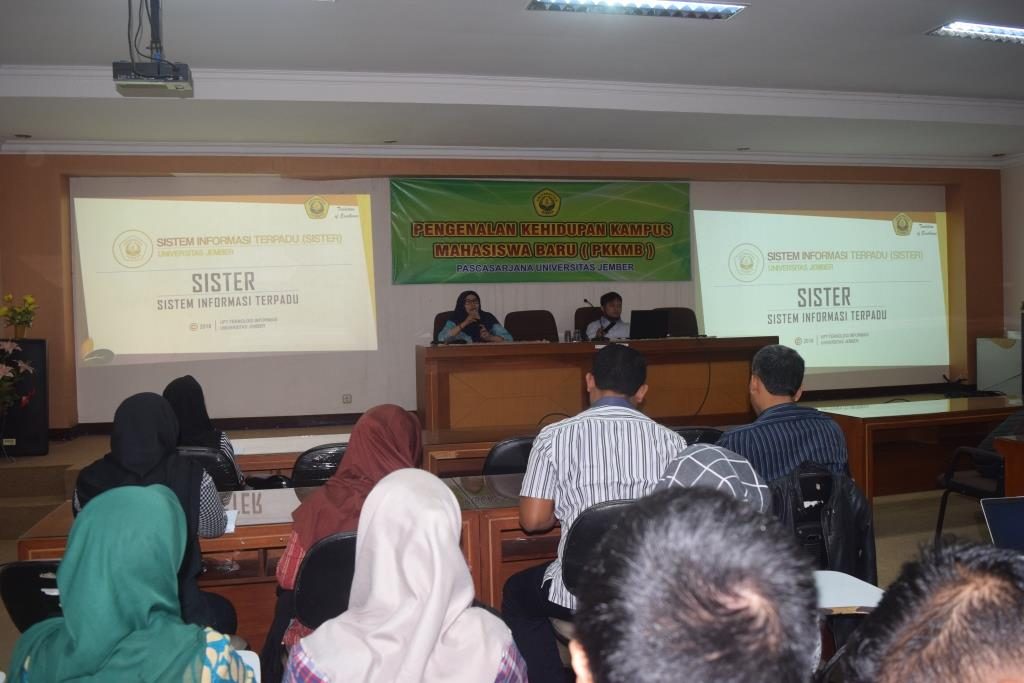 Pengenalan Kehidupan Kampus Mahasiswa Baru (PKKMB) Pascasarjana Universitas Jember hari pertama dimulai Senin (27/8/2018). PKKMB Pascasarjana Universitas Jember dilaksanakan mulai tanggal 27 Agustus s.d 3 September 2018 dengan terbagi beberapa Program Studi yang mengikutinya bertempat di Aula UPT Teknologi Informasi dan Komunikasi, dan UPT Perpustakaan Universitas Jember.