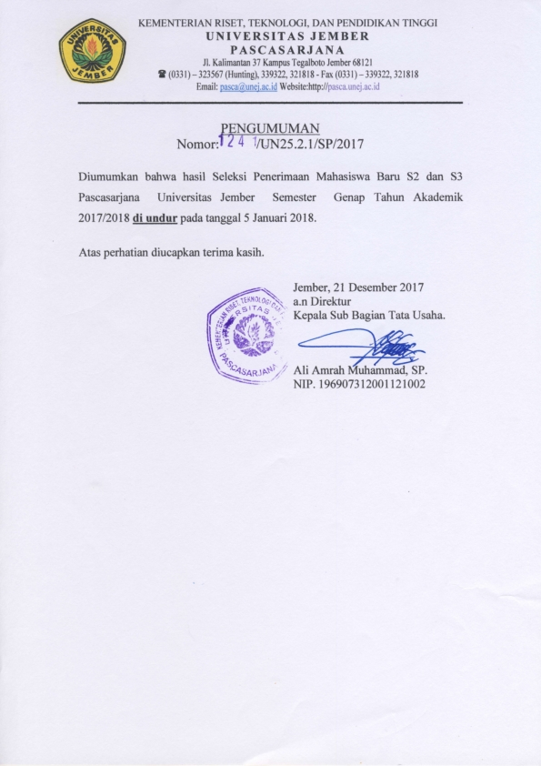 UNEJ Post Graduate Scholarsihp Program