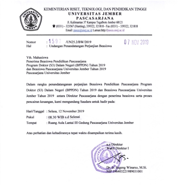 Pengumuman Bagi Penerima Beasiswa