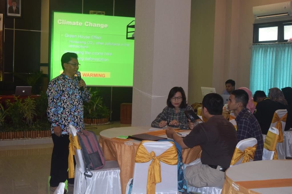 Wakil Rektor II UNEJ Drs. Wachju Subchan, M.S., Ph.D. memberikan materi pada Workshop Penghitungan Karbon di Lingkungan Universitas Jember: Peran Strategis Pendidikan Tinggi Dalam Menghadapi Perubahan Iklim dengan judul Early Warning System Cilmate Change: Peran dan Aktif Perguruan Tinggi (25/11/2018) dihadapan Seluruh Perwakilan Himpunan Pencinta Alam di Lingkungan UNEJ bertempat di aula Pascasarjana UNEJ.