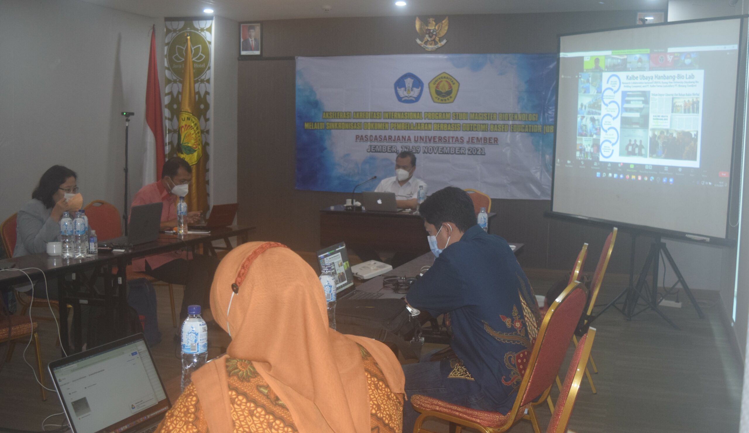 Program Studi Magister Bioteknologi Pascasarjana Universitas Jember mengadakan kegiatan Akselerasi Akreditasi Internasional Program Studi Magister Bioteknologi Melalui Sinkronisasi Dokumen Pembelajaran Berbasis Outcome Based Education (OBE) (17-19 November 2021) secara luring dan daring yang dibuka oleh Wakil Rektor I Universitas Jember Prof. Drs. Slamin, M.Comp.Sc., Ph.D. dihadiri Wakil Direktur I Pascasarjana Prof. drg. Mei Syafriadi, M.D.Sc., Ph.D., Koordinator Program Studi Magister Bioteknologi Prof. Tri Agus Siswoyo, Ph.D bersama narasumber Dr.rer.nat. Sulistyo Emantoko Dwi Putra, Ketua Ikatan Program Studi Bioteknologi Indonesia dan Dr. Yudhi Nugraha S Putra, Investigador científico di Instituto de Salud Carlos III bertempat di Hotel Java Lotus Jember yang diikuti oleh tim Pascasarjana, Fasilitator, dan undangan.
