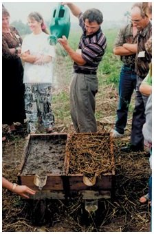Gambar berikut menunjukkan bahwa tanah yang tidak terlindungi (terbuka dan baru diolah) sangat peka terhadap erosi, sebaliknya tanah yang tertutup mulsa (jerami) dapat terlindungi dari erosi.