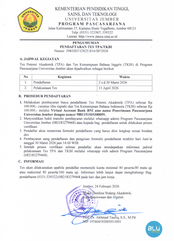 TES TPA DAN TKBI PASCASARJANA UNIVERSITAS JEMBER